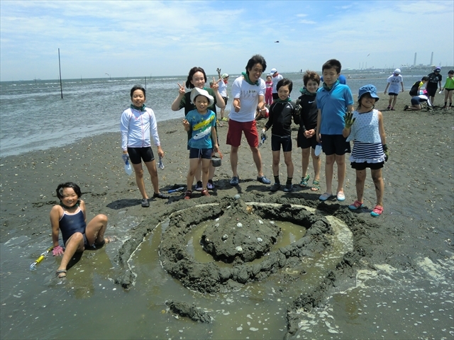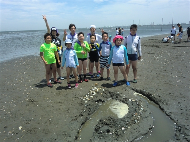 場所によっては直ぐに潮が満ちてきてしまう可能性もあるので、場所選びと時間が勝負のカギです。そしてジャンケンで場所を決めて創作開始!!