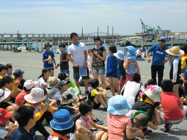 帰りは「海ほたる」でのお散歩もできました。時間通り無事に区役所へ戻り、お父さんとお母さんに「ただいま」を言えました。なんとタイやカニやあさりなど、漁師さんからのお土産をもらって解散。