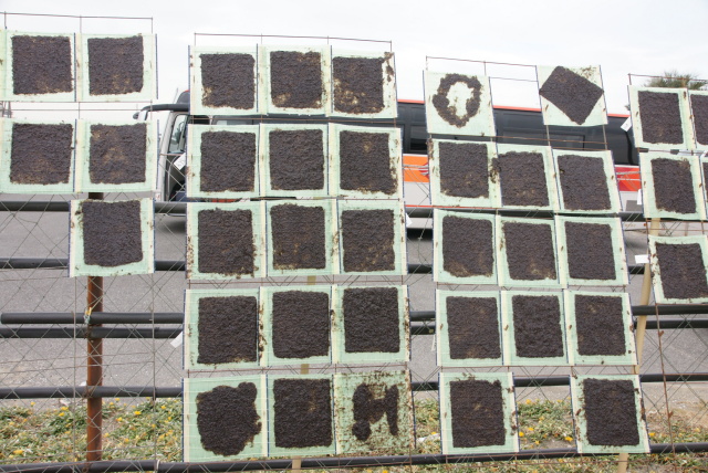 海苔の付いた簀を枠にかけ、天日干しで乾燥したら出来あがりです。